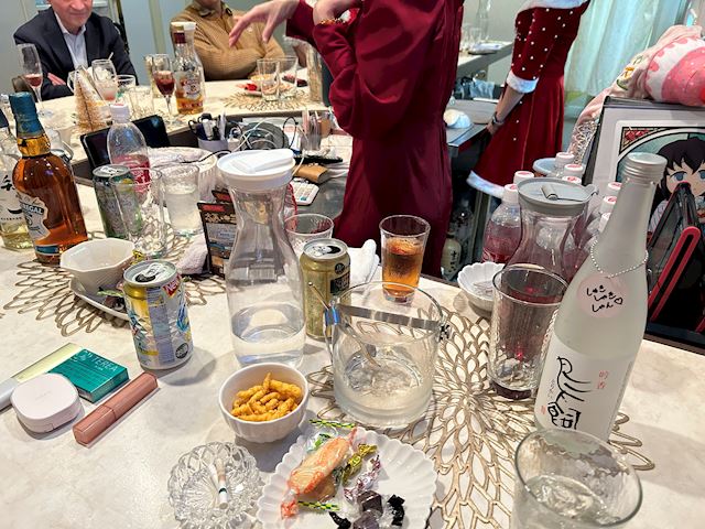 杏奈ママのチョイスした極どいコスチュームにキャーキャー奇声を発しながら、途中生着替えもどきを披露する大胆なキャストさんもいらっしゃいながらスタンバイ。