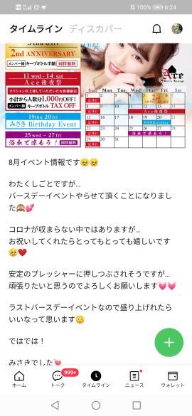 自分の誕生日の日は、地元で祝ってもらうのとは別に、1年半くらい指名してるし、みさきに聞いてみると休みって言われる😅