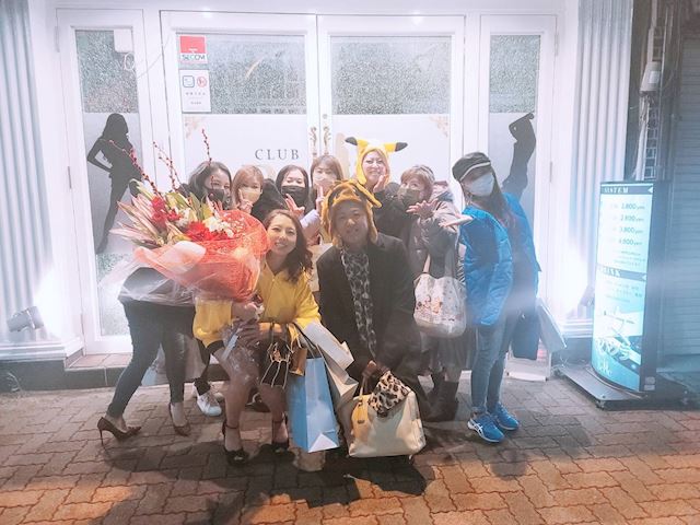 この日は以前にもサプライズをご一緒した、美香さんこと会員はちくん、澪のさやかさん、moshのみなみさん、久々にお会いしたmrs.J名駅西のさやぽよ、パルフェのゆうこママ、それになんと岡崎からラピスラズリのめぐママまでご一緒ということで、花束をつくり仕事を終え少し遅れて緊張しながら待ち合わせの居酒屋に到着。食事をしながらみんなが揃ったところで店を出ていざベルさんへ。