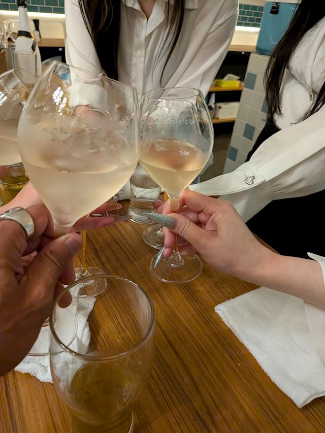 僕の日焼けした腕をみんなが「チキンレッグみたいで美味しそう」とかイジりだしたり、鬼滅の刃の話したり、テキーラ頼んで罰ゲーム飲みしたり、シャンパンも飲んで、最後はカラオケで湘南乃風の睡蓮花を大合唱して終了
