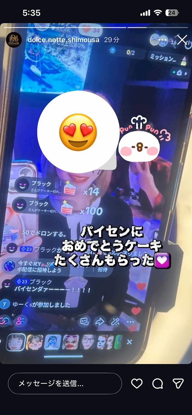 初めてドルチェさんのアカウントでTikTokライブに参加したのですが、その日ちょうど誕生日で初ライブでたくさん投げ銭? ケーキを500個投げてもらえたらととても興奮しました笑 4人か5人しか視聴してなかったのに1000近く合計で投げてもらえてたような気がします!