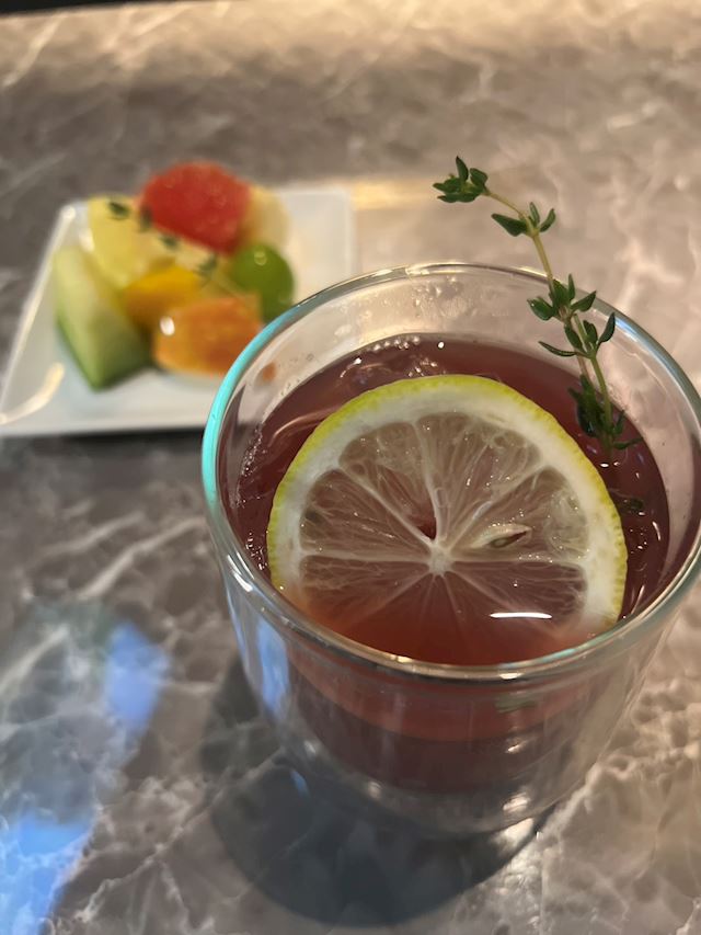 氷が溶けにくい厚めのグラスに注がれた赤ワインはオレンジとシナモンに少しのハチミツと隠しきれない愛情、どうやらレシピはホットワインと同じようだ。