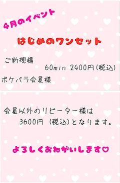 【4月限定】平日1日3組限定60分1,000円ポッキリ!!