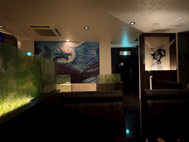 8回目で初めて気づきました。壁に大きな竜の絵。キャストの方に聞くと、この箱の黒歴史みたいです。興味ある方は言って聞いてみてください。壁の竜と壁の花のかざりえらい対照的な飾りですね。どうぞ来て見て黒歴史をしろう😅