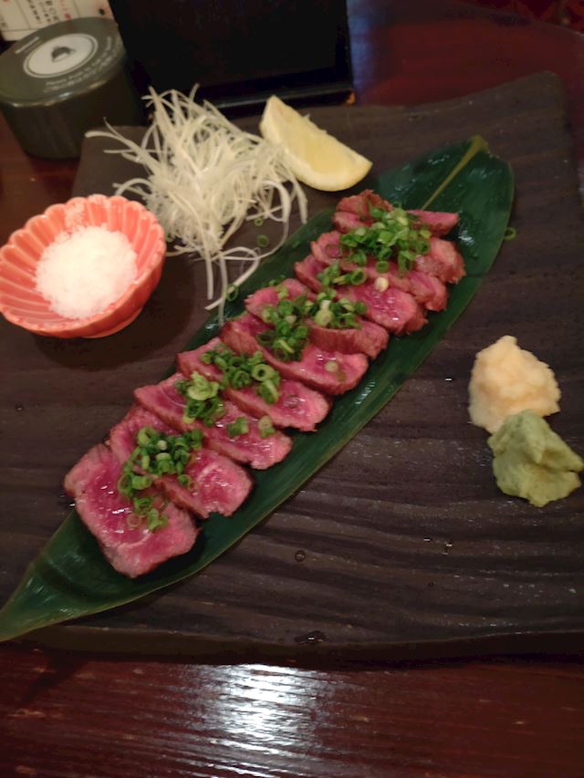 お通しが寿司の握りでびっくりしたのですが、その後に頼んだ料理もどれも美味しくて、特にも写真を載せた仙台牛のたたきと牡蠣が個人的には美味しかったです!