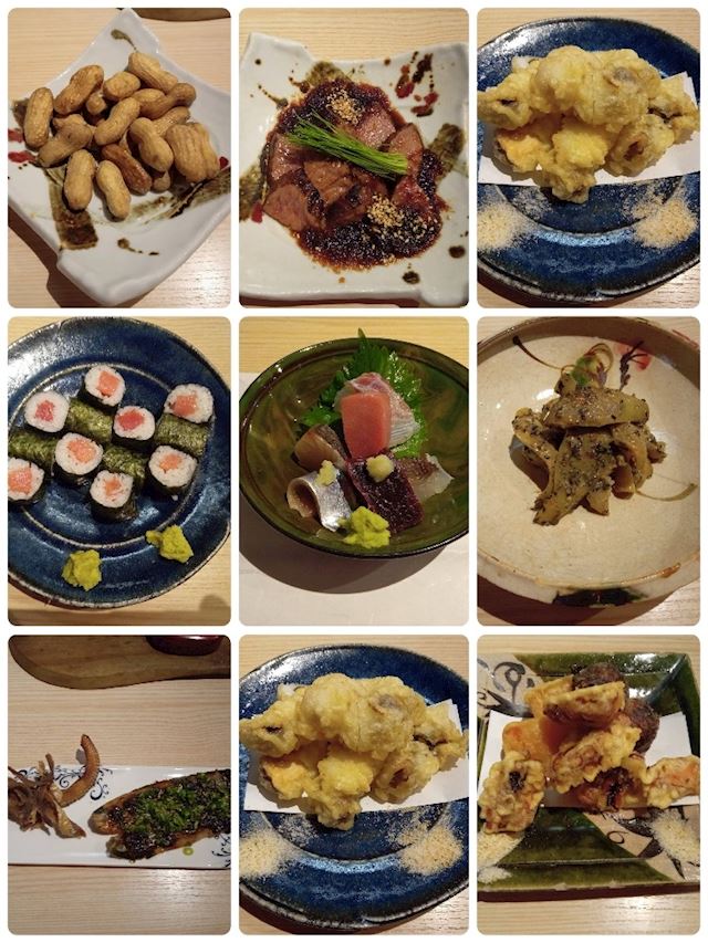 長月12日の華金。食いしん坊コンビは、お気に入りの和食の名店「銀彩」さんで待ち合わせ同伴しました。河合は銀彩さん三度目でしたがその料理の実力に圧倒されました。写真は美魔女ママブログよりこの日いただいた9品です。お造り盛り合わせから、〆の鉄火巻(中トロ巻に近い)までどれも絶品でした。とりわけ今回すばらしかったのは「いもたこなんきん」これは通常、煮物で提供されますが味付けした煮物をカラット天ぷらにして出されました。また鱧は秋の味覚松茸を芯にまいて天ぷらに。いずれも最高でした。美魔女と顔を見合わせ思わず「美味しい」を連発。脂の乗った秋刀魚をバルサミコ酢でソテーした一品も素晴らしかったです。大満足💖