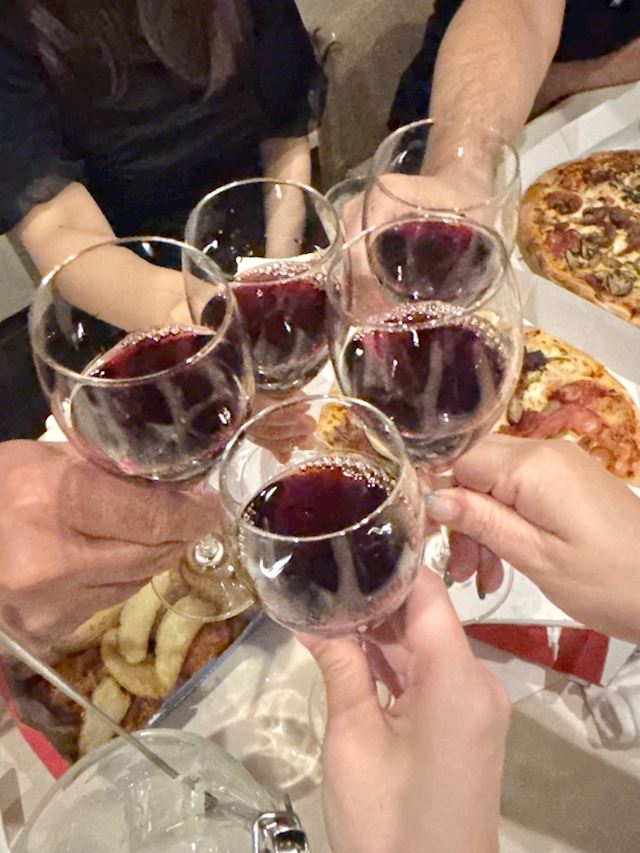 神無月3日、華金で食いしん坊コンビは街中華の名店「こ玄」さんで待ち合わせしました。美魔女に二日遅れながら誕生日のお祝いを渡してこの日も美味しい中華を堪能させていただきました。その様子は10月10日のママブログの写真通りです。水餃子が美味しくて2度注文するあたりは食いしん坊コンビならでは。定番の黒酢酢豚、青椒肉絲もとっても美味しかった。〆は炒飯でばっちりでした。紹興酒もいつもながらソーダで割るドラゴンハイボールで大満足。お腹いっぱいで温に午後8時過ぎに向かいました。午後8時半前に温に到着。若手のホープうるさんが笑顔でお出迎えしてくれました。手土産のお弁当を買ってこれなかったので出前ピザを注文💖