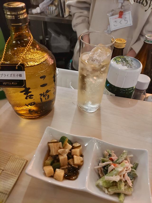 ナオコママがおばんざいのホタルイカと豚汁を注文し2人でわけわけしながら美味しく食べてみんなでお話が弾む弾む😇😇😇