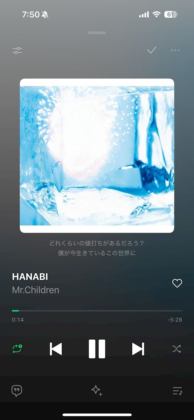 写真は今日歌ったミスチルの名曲!まちゃがHANABI合いの手良い!