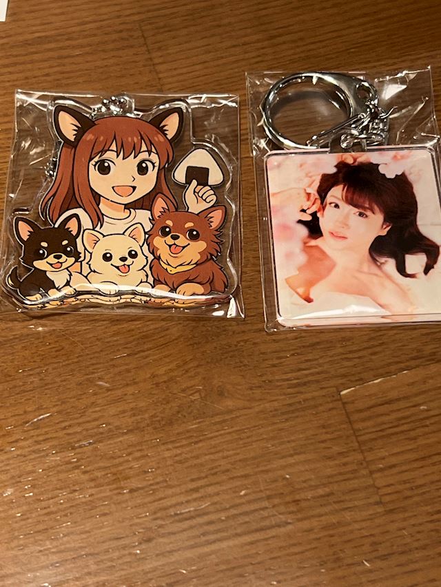 席に座ると、ようこさんから、はい❗️嫁さんにプレゼントといって、ようこさんオリジナルのキーホルダーをもらっちゃいました。やったー🙌🙌喜ぶ嫁さんです。嫁からは、最初にも説明した、ドレッシングとパスタソースに、小エビフライに以前嫁飯の飯テロで紹介した、厚揚げの麻婆厚揚げを渡すと、やばい😅明日からの衣装とドレス入るか心配する🥺🥺ようこさんです。あと、途中で買って来た、店内で揚げたての芋けんぴに福島銘菓のままどおるに、こしあんの羊羹に求肥が入っている、あもを渡したら、ようこさんが‼️嫁さんなんで私の大好きな、芋けんぴとままどおる大好きなのなんで知っているの🥺🥺