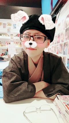 仕事意外の時は着物、スキンヘッドと個性的でございます。